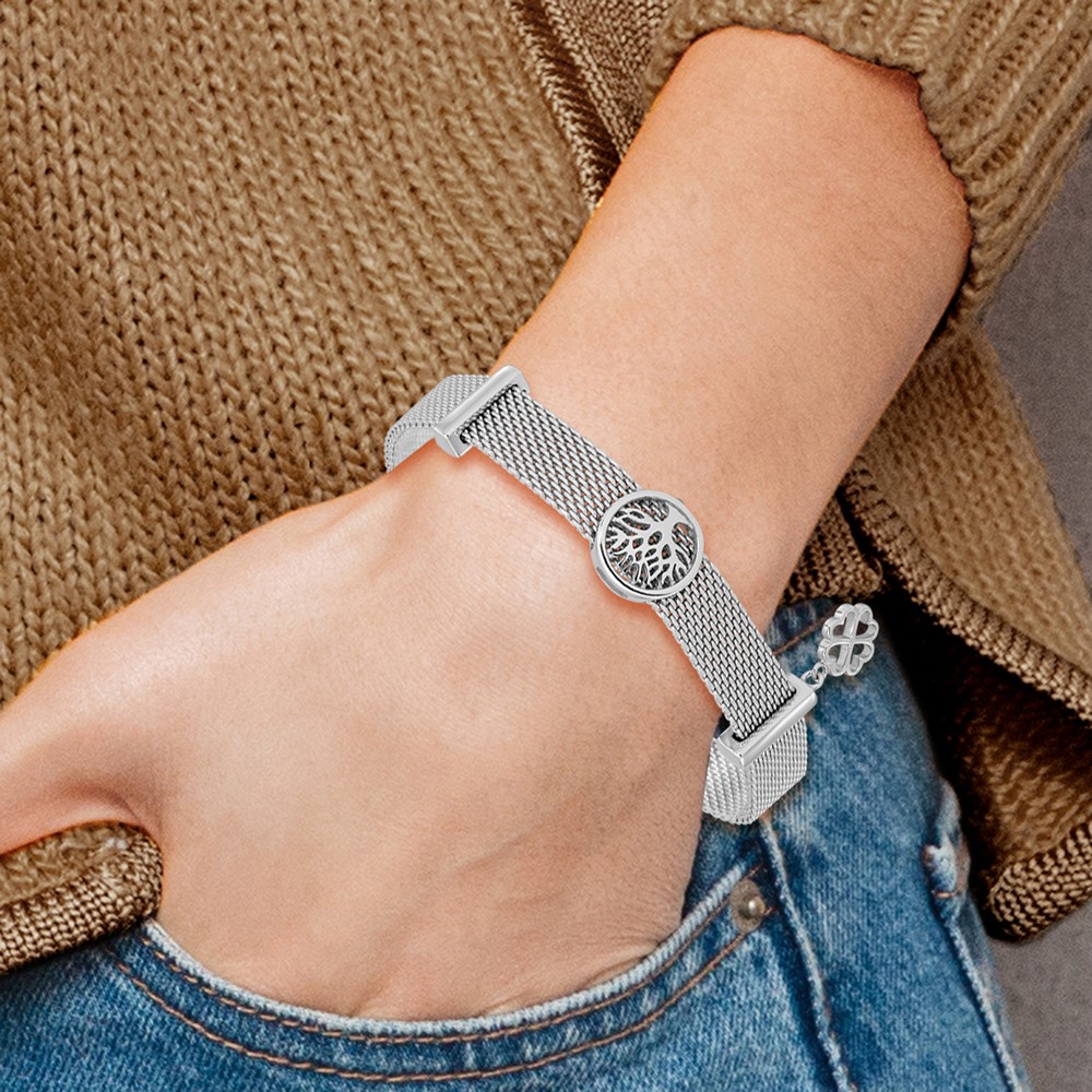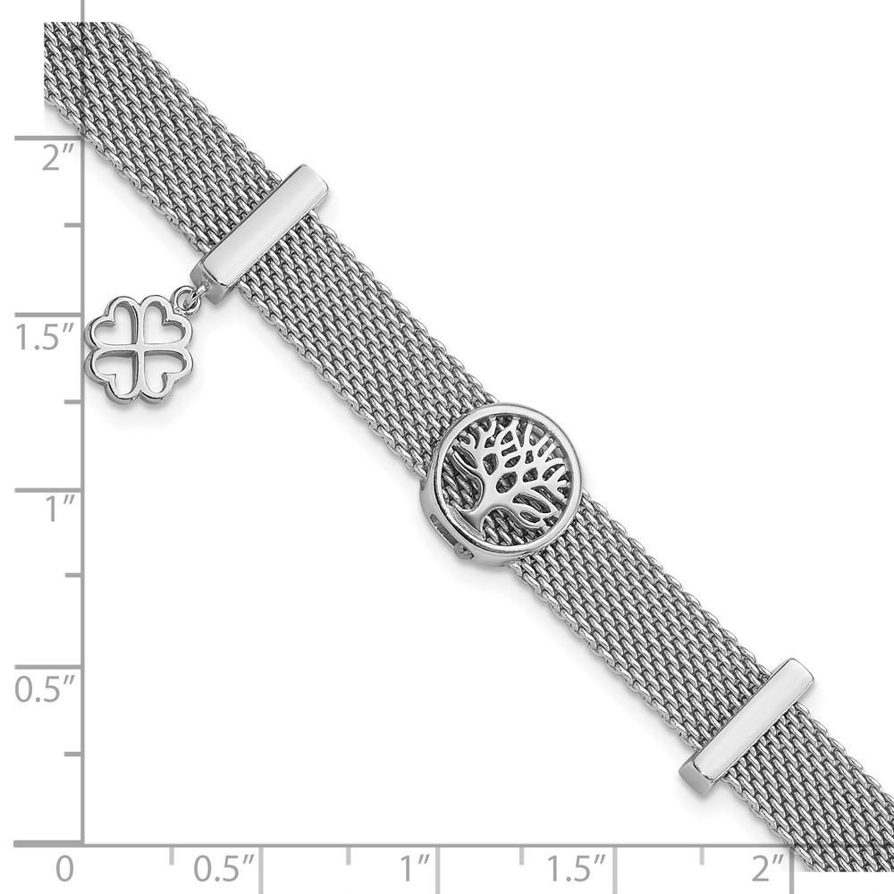 Sterling Silver Rh-plated Mesh Tree with Clover Dangle 6.75in Bracelet