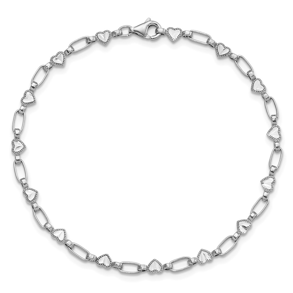 Sterling Silver Rhodium-plated Heart 7.5in Bracelet