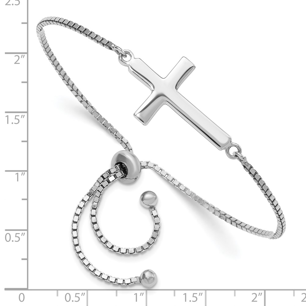 Sterling Silver Rhodium-plated Polished Cross Adjustable Bracelet