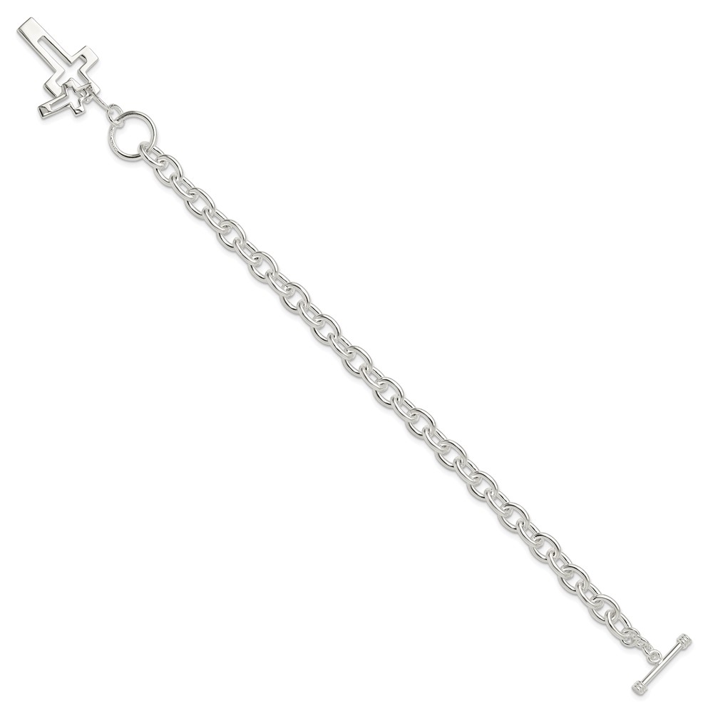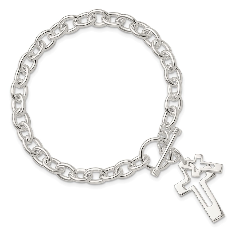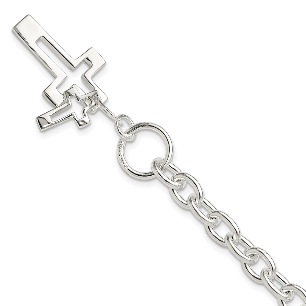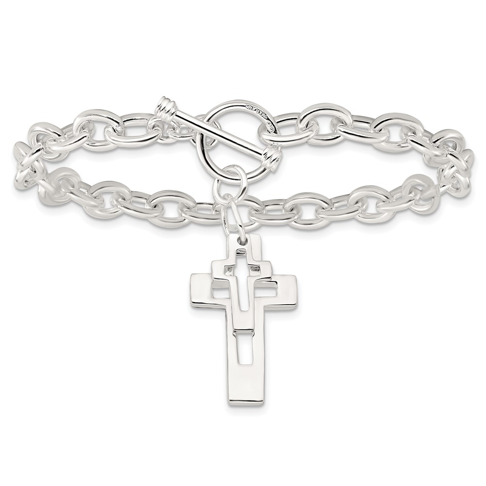 Sterling Silver E-Coated Double Open Cross Toggle Bracelet