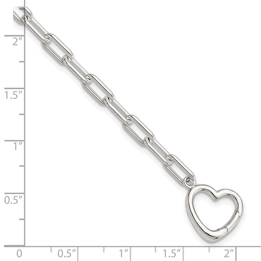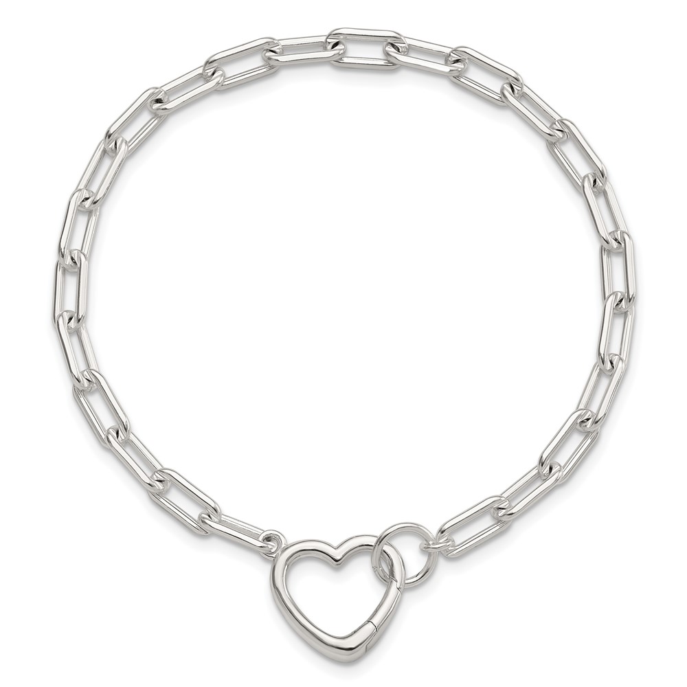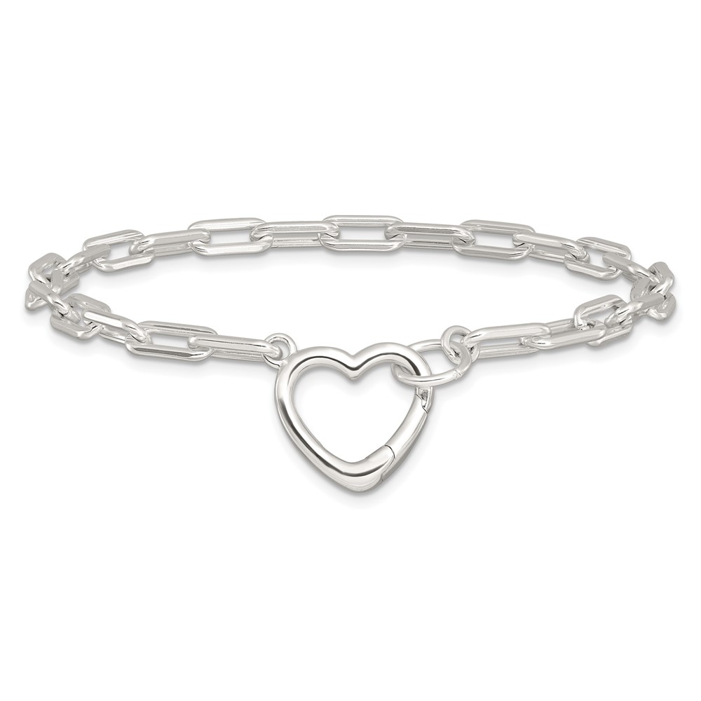Sterling Silver Open Link 7.25in Heart Clasp Bracelet
