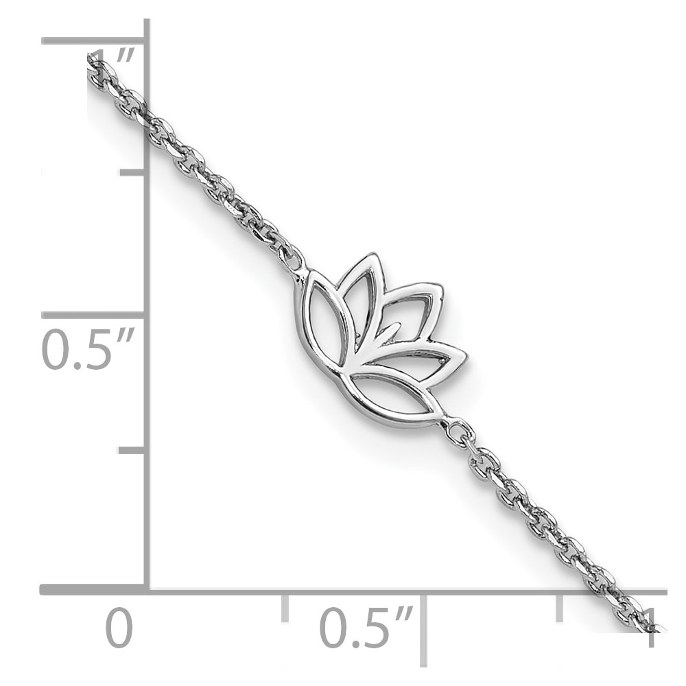 Sterling Silver Rhodium-plated Lotus Flower w/.5 in ext. Bracelet