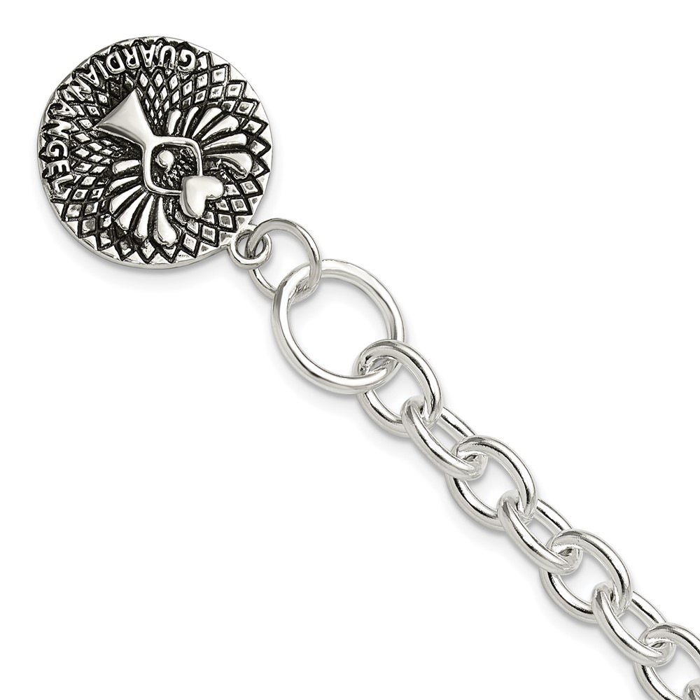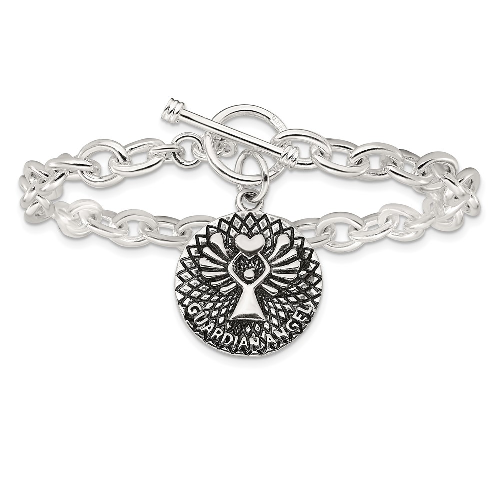Sterling Silver Oxidized Dangle GUARDIAN ANGEL Toggle Clasp Bracelet