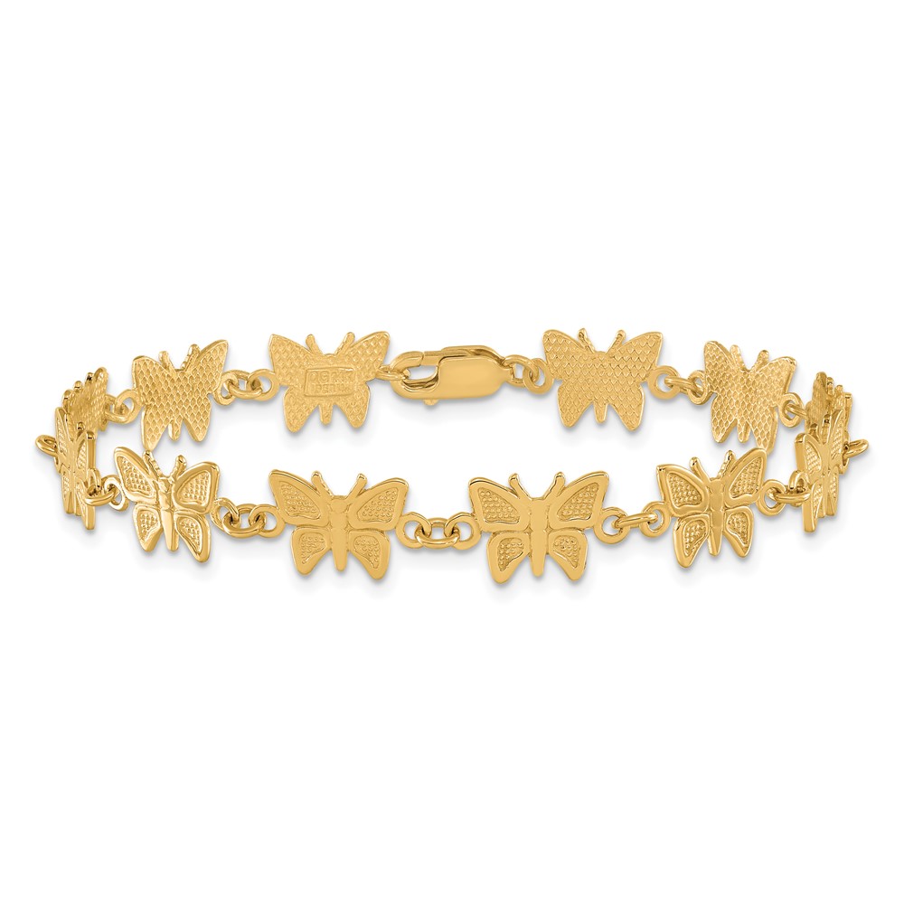 14k Satin and Polished Butterfly 7 inch Bracelet