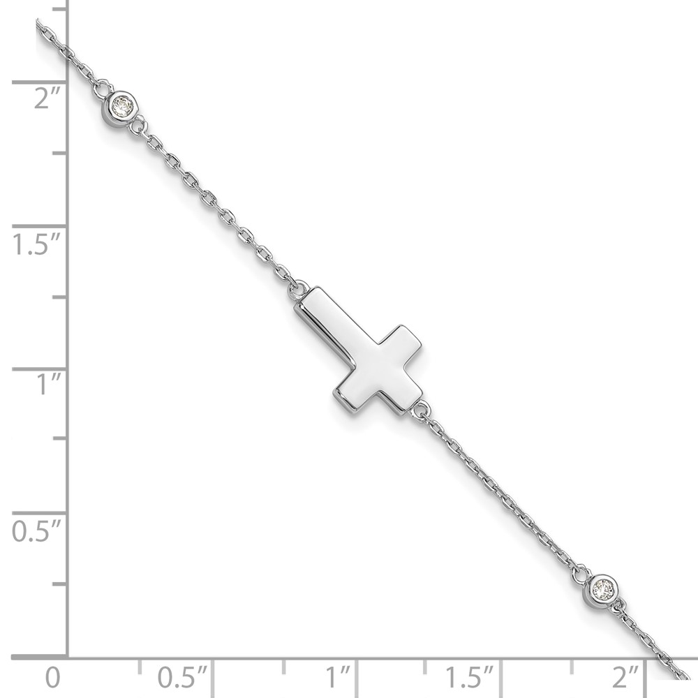 Sterling Silver Rhodium-plated CZ Sideways Cross 8in w/1in ext. Bracelet