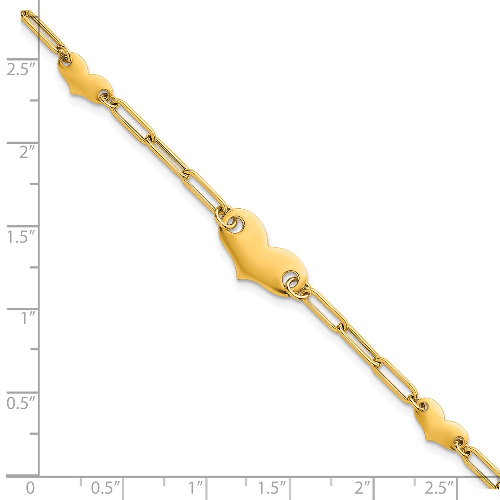 14k Polished Paperclip Link With Three Hearts 7.5 inch Bracelet
