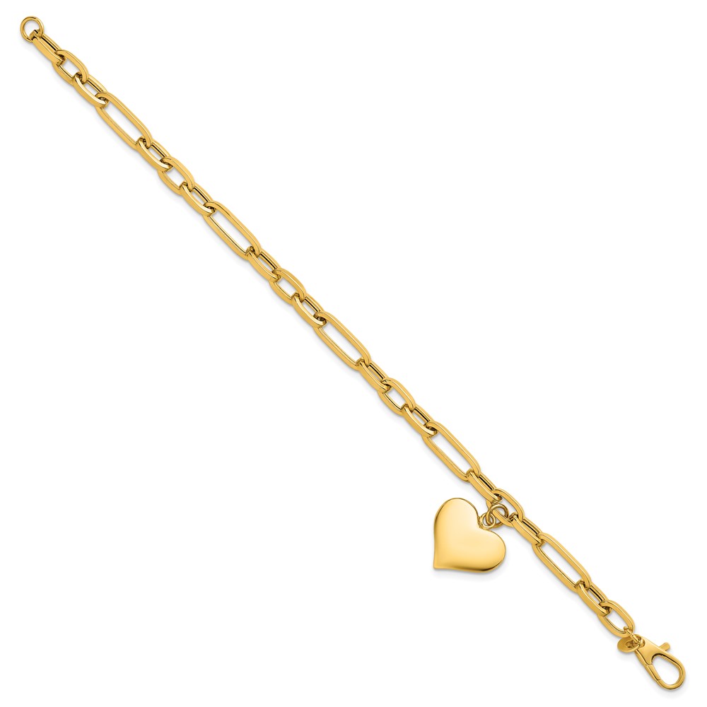 14k Polished Paperclip Figaro Link With Puffed Heart Dangle 7.5 inch Bracelet