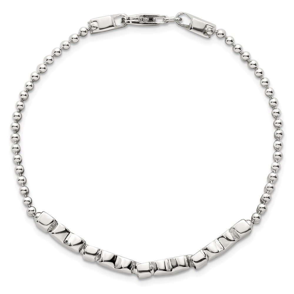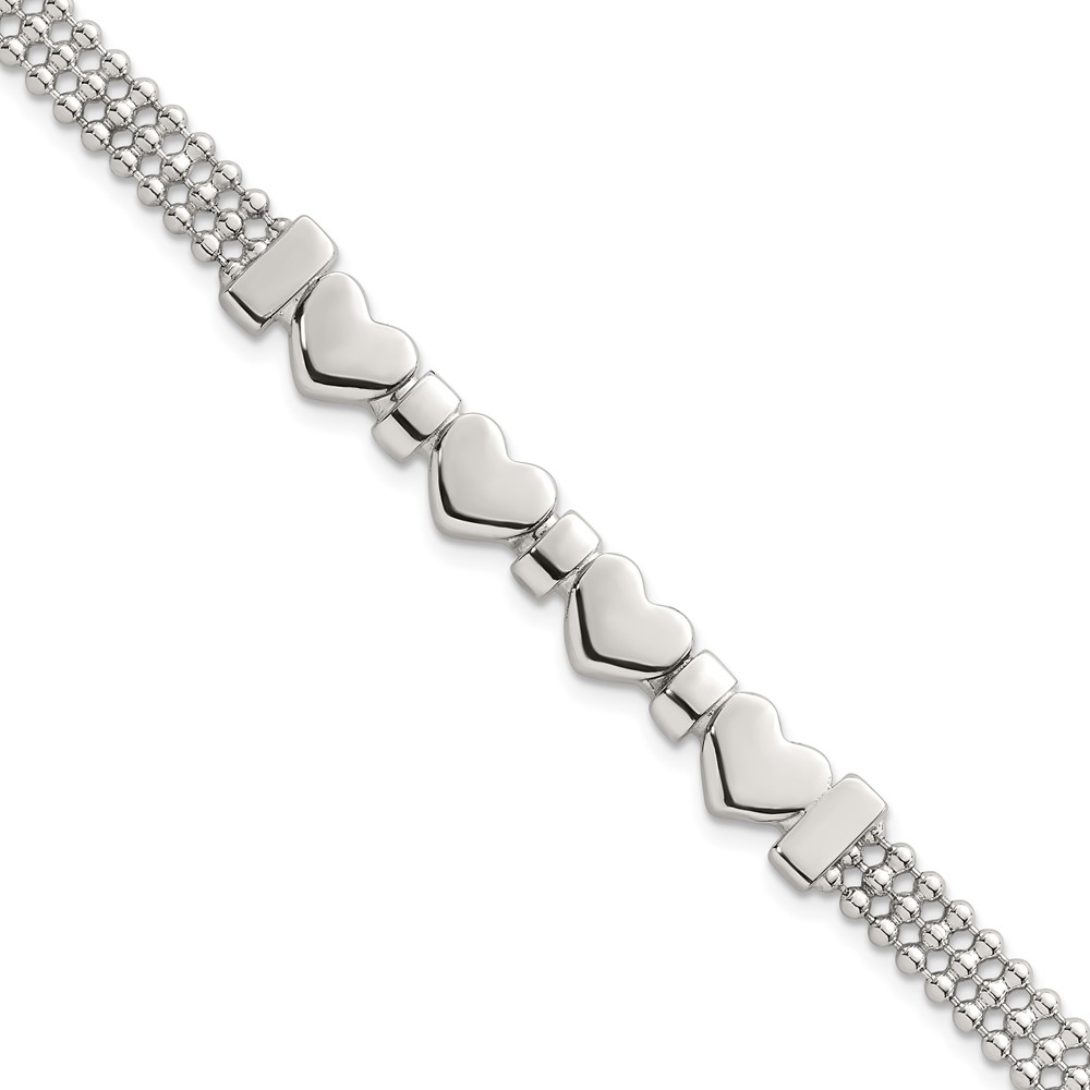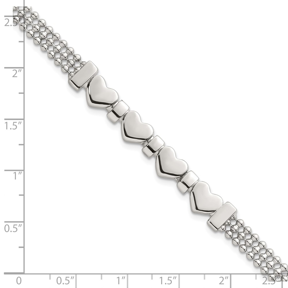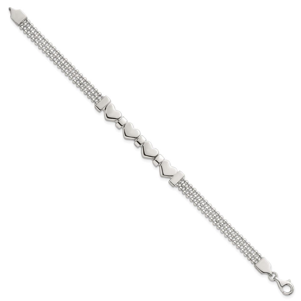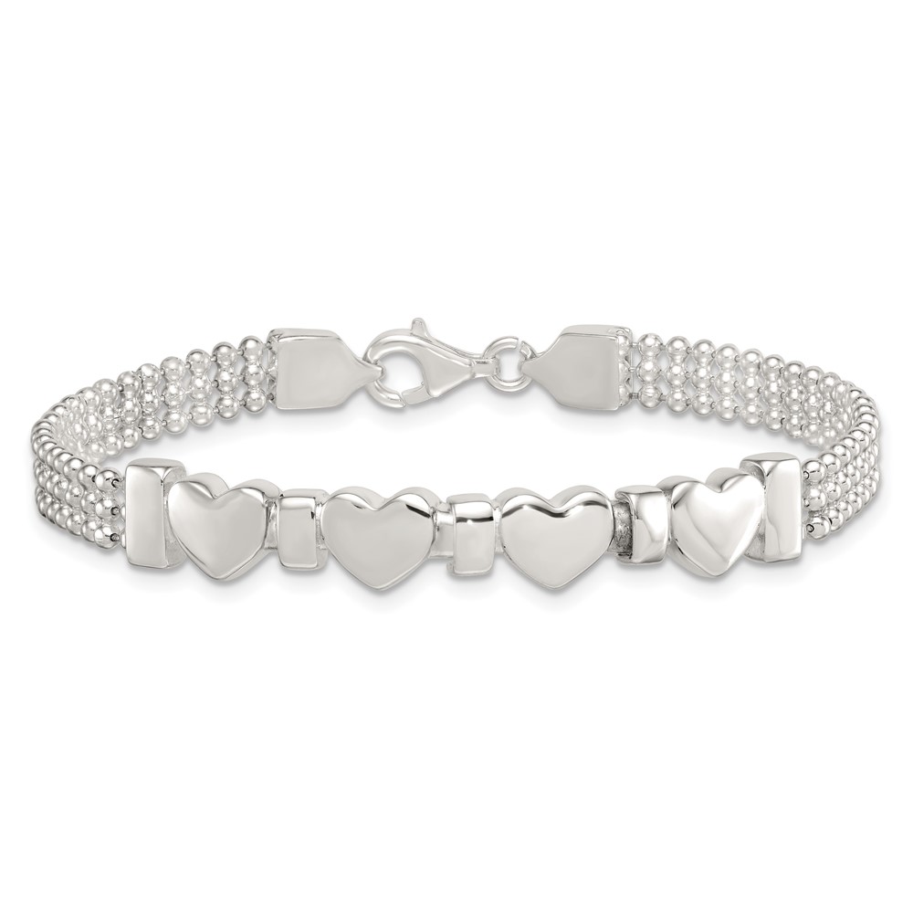 Sterling Silver Polished and Beaded 4-Hearts 7.25 Inch Bracelet