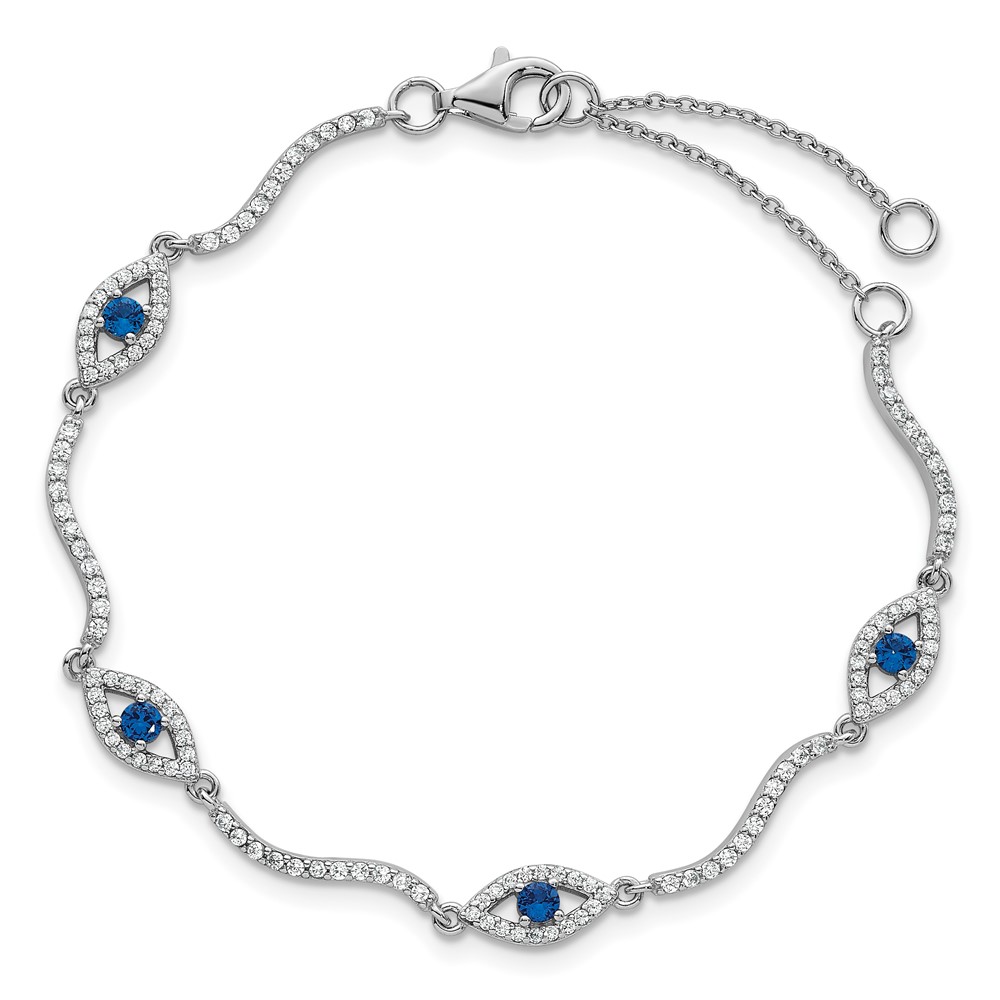 Sterling Silver Rhodium-plated Polished Lab Created Spinel and CZ Evil Eye 6 Inch with 2 Inch Extension Bracelet