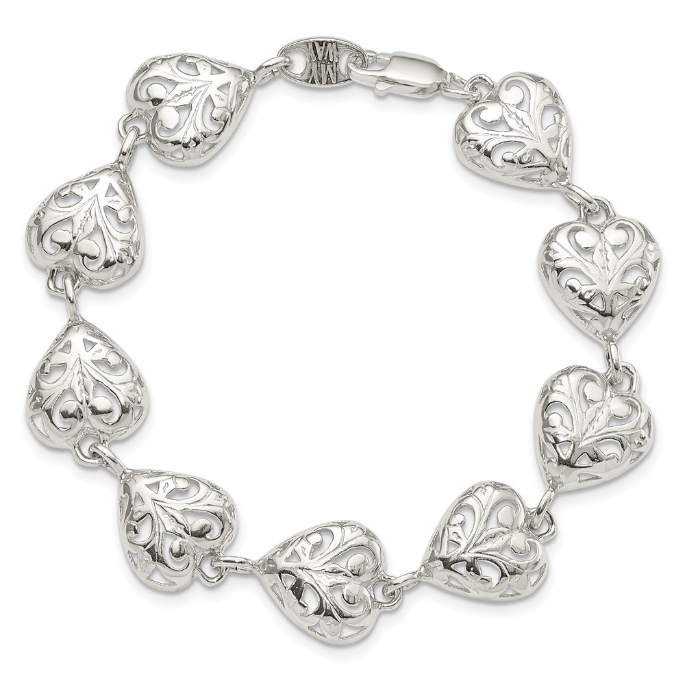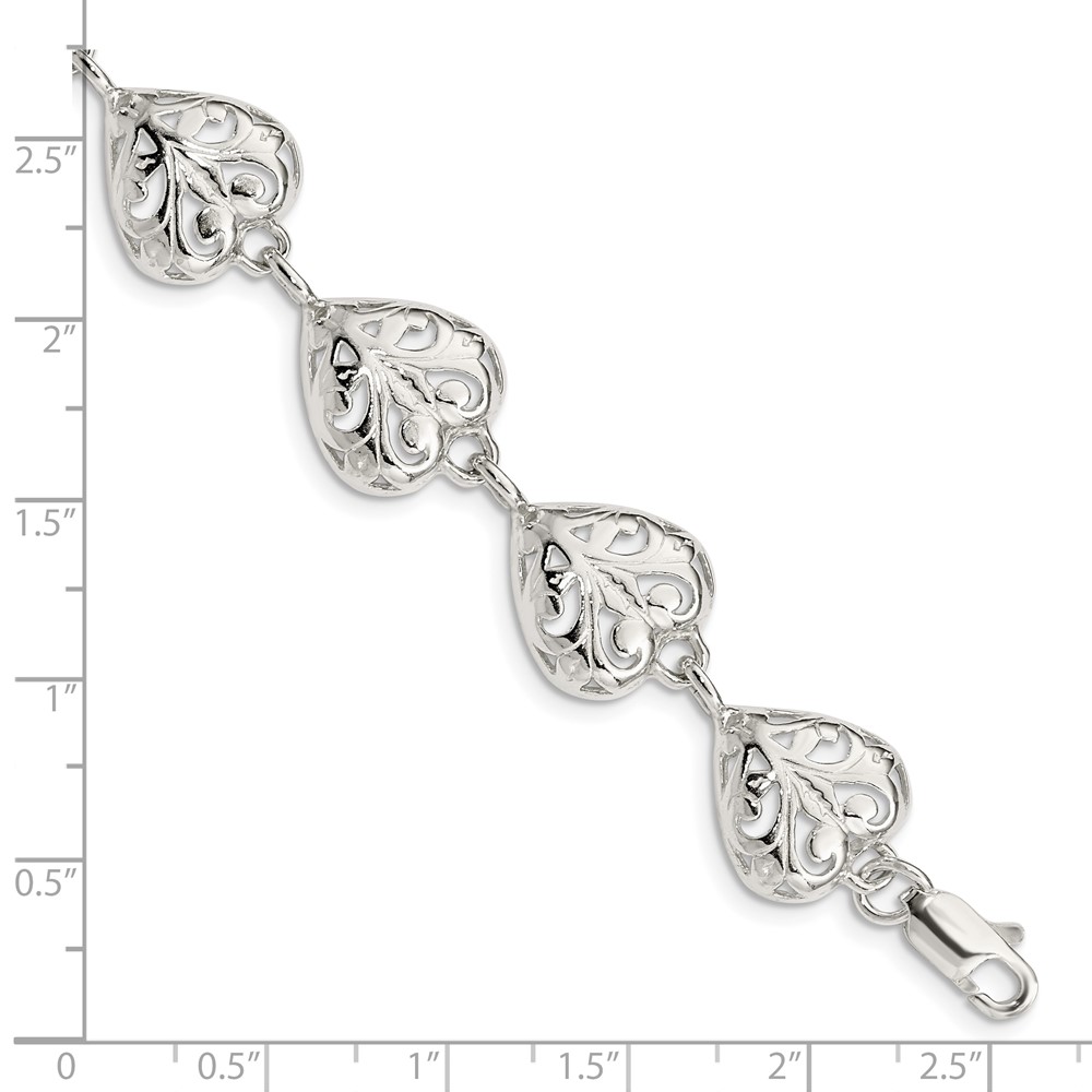 Sterling Silver Fancy Filigree Heart 7 inch Bracelet