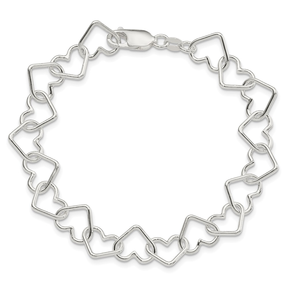 Sterling Silver Polished Fancy Large Heart Link Bracelet