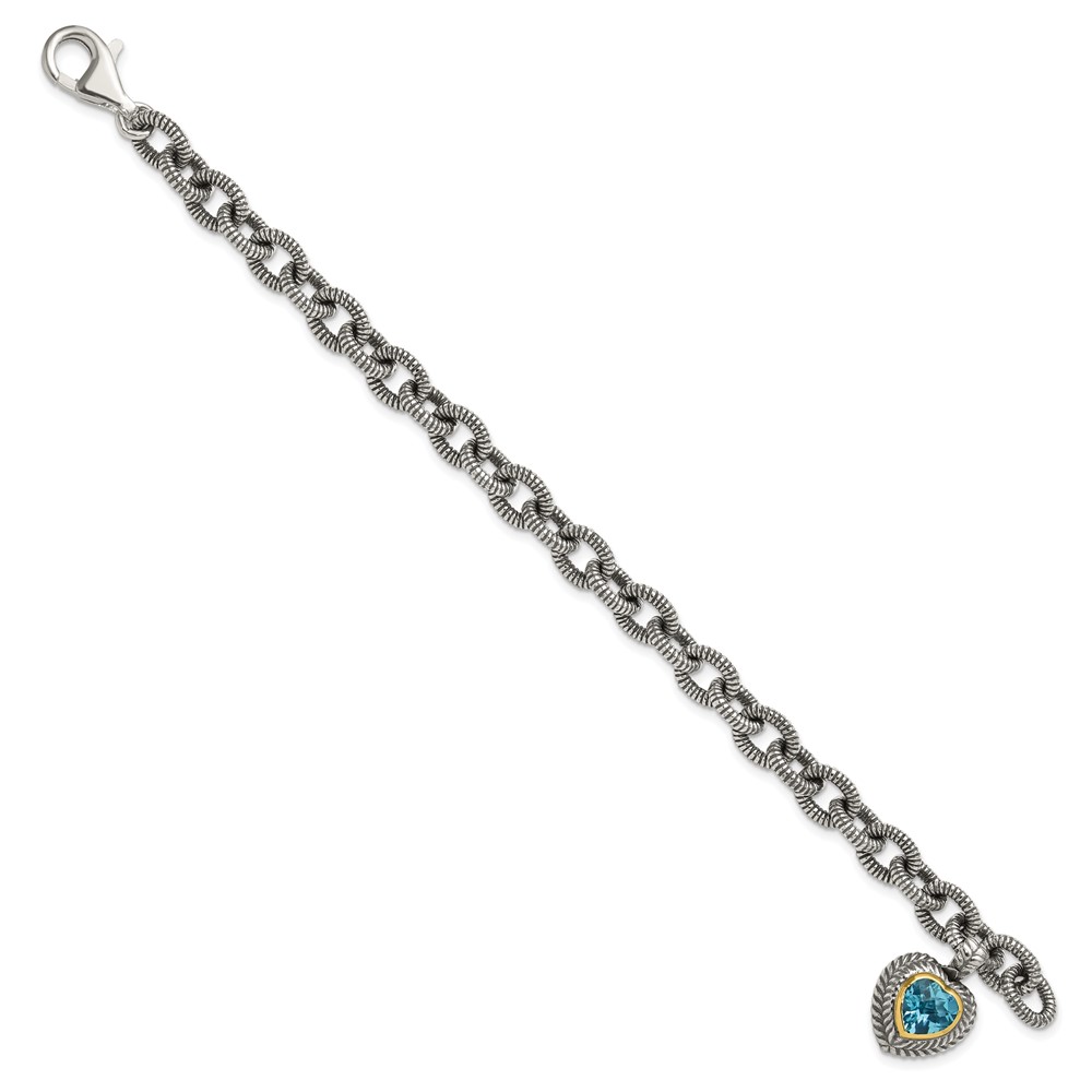 Shey Couture Sterling Silver with 14K Accent 7.5 Inch Antiqued Swiss Blue Topaz Heart Bezel Bracelet
