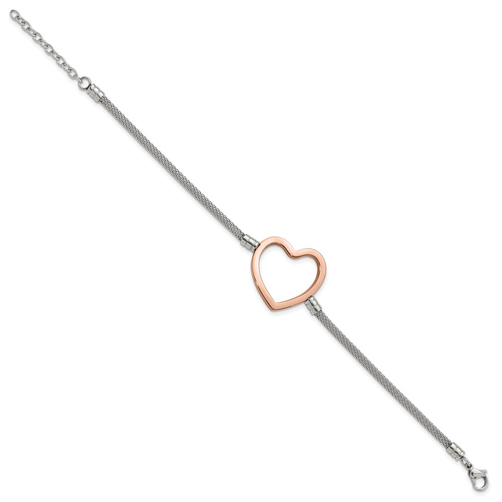 Stainless Steel Pink PVD-plated Heart Mesh w/ 1.5in ext Bracelet