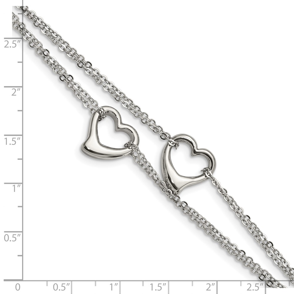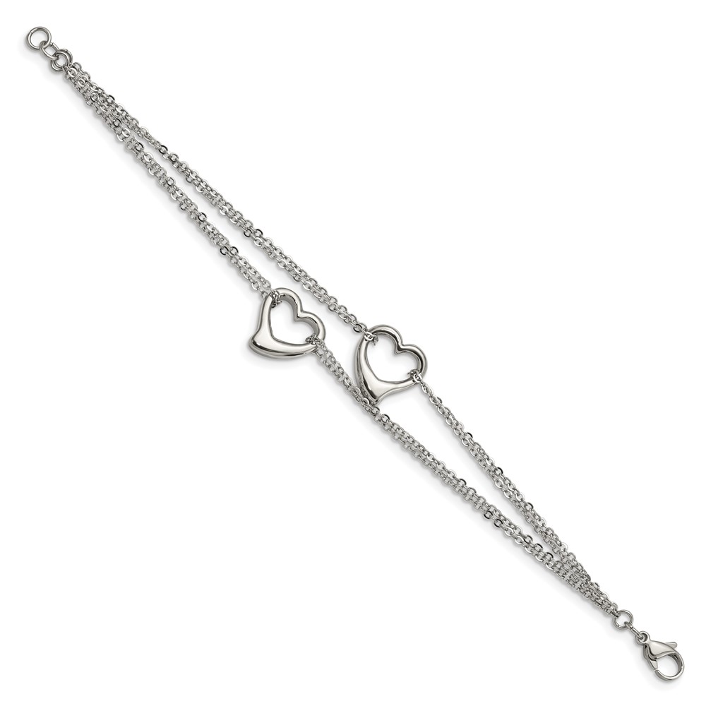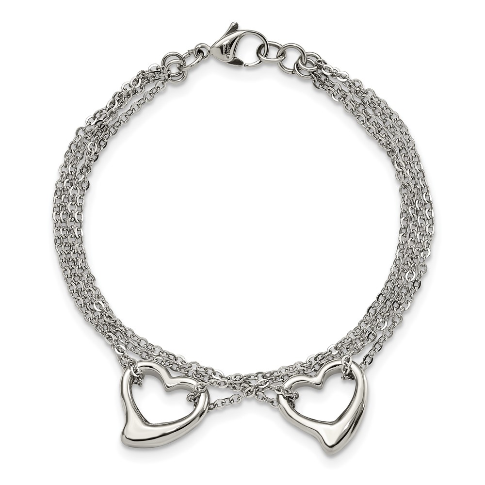 Chisel Stainless Steel Polished Cutout Hearts 7 inch Multi-Strand Bracelet