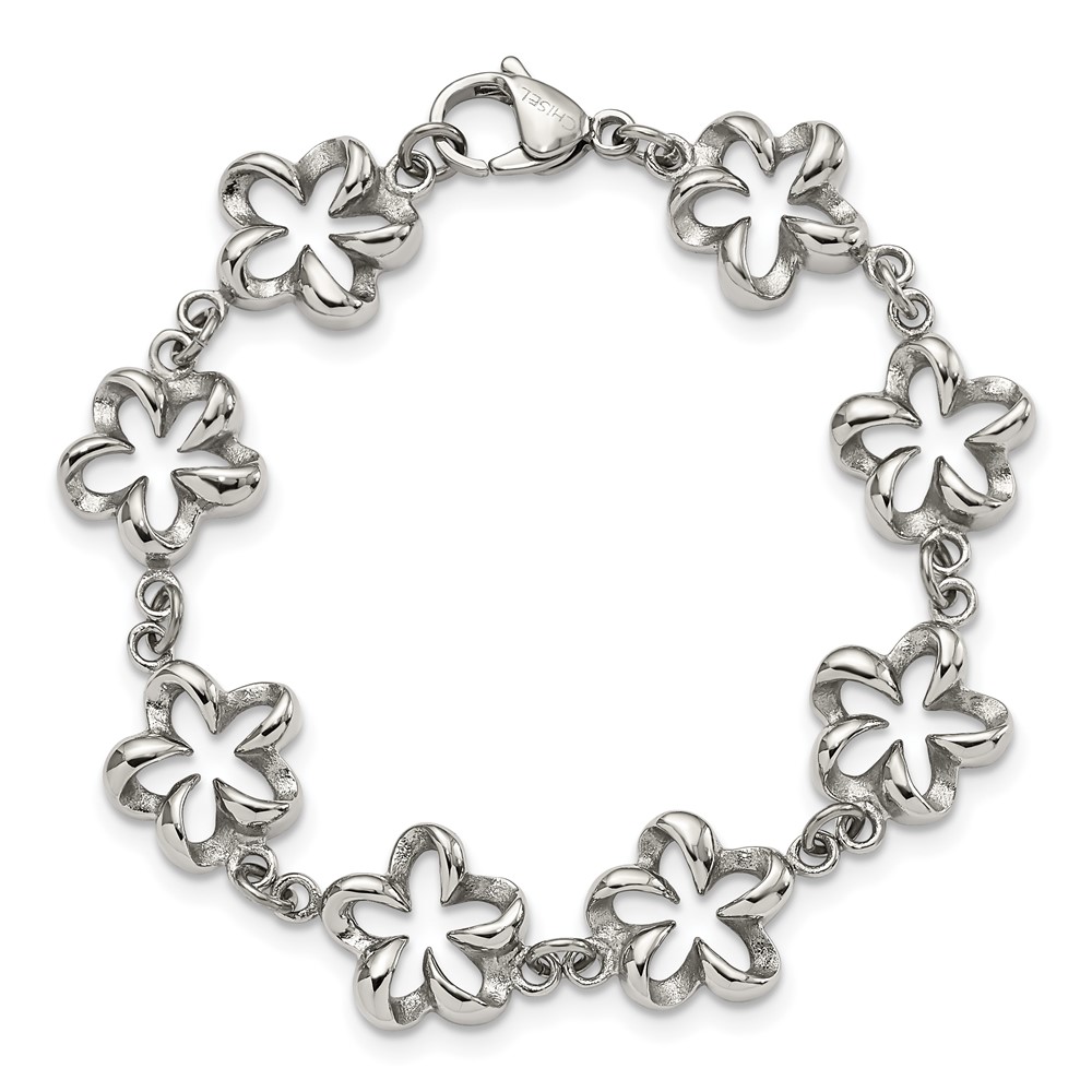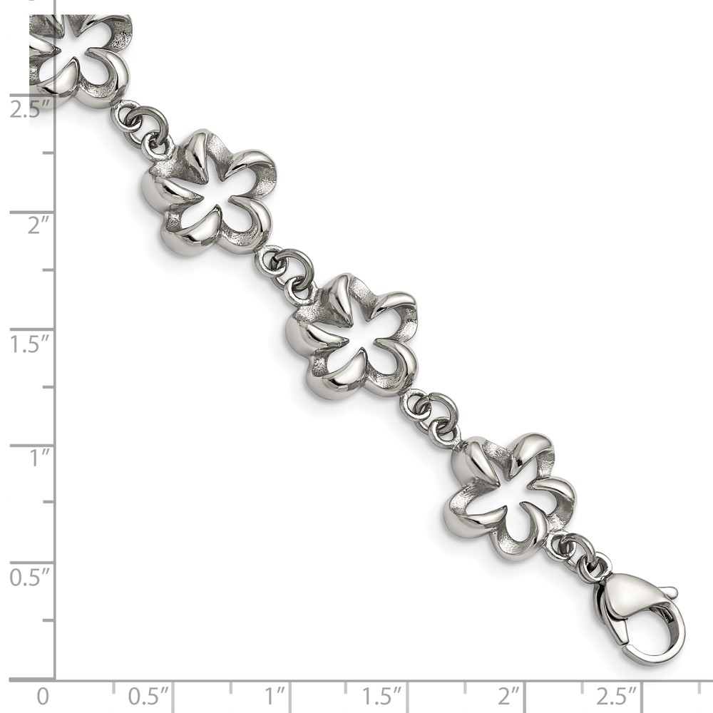 Stainless Steel Polished Flower Link 7.5in Bracelet