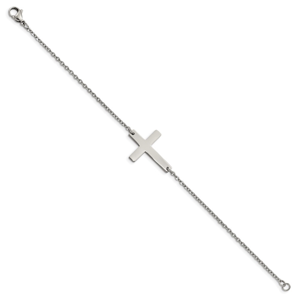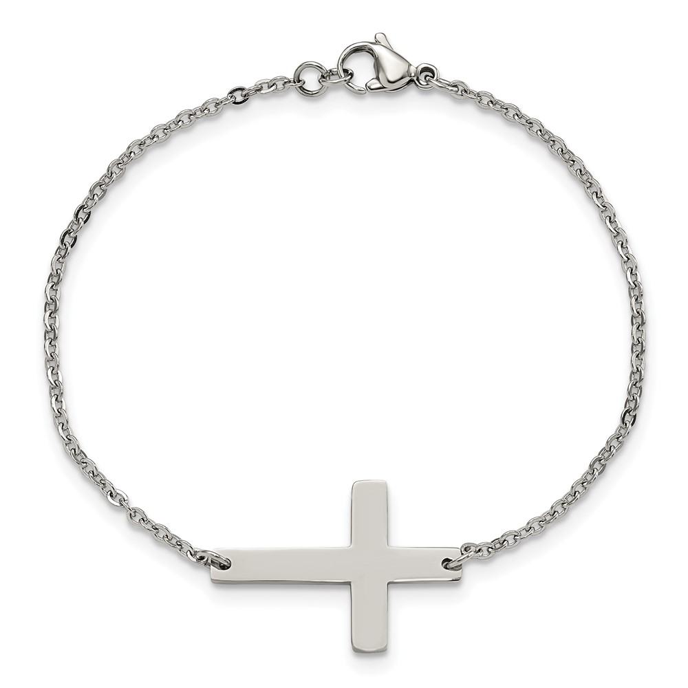 Chisel Stainless Steel Polished Sideways Cross 7.25 inch Bracelet