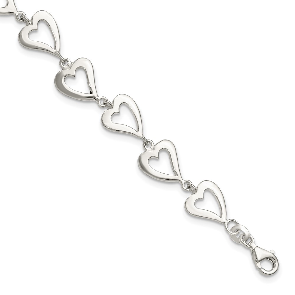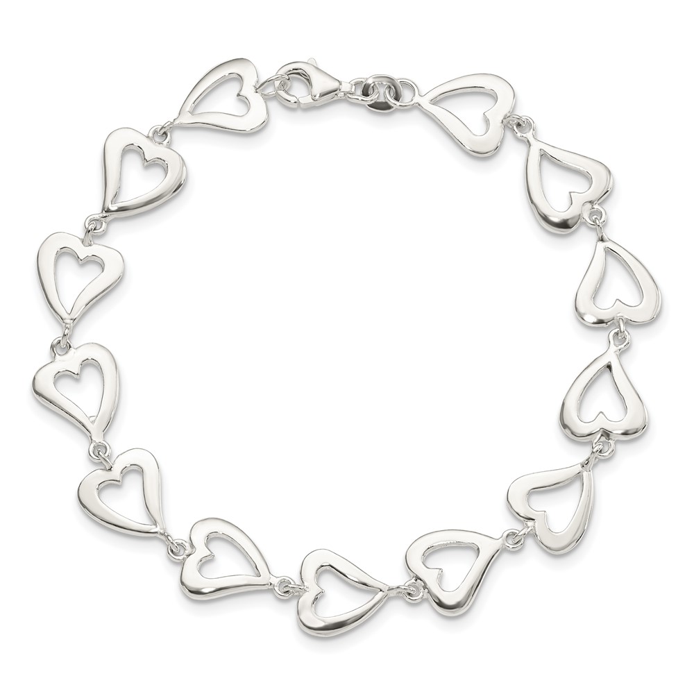 Sterling Silver Polished Heart Bracelet