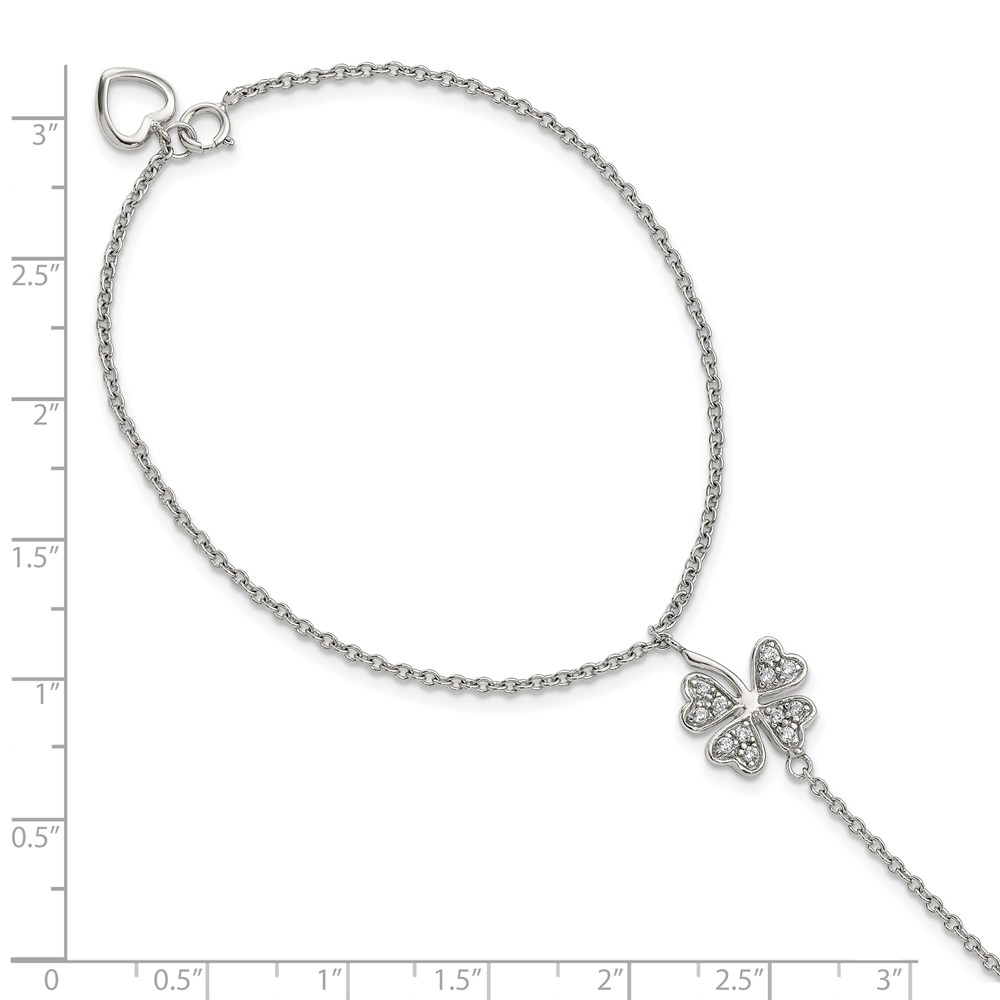 Sterling Silver RH-plat Polished CZ Four Leaf Clover Attached Ring/Bracelet
