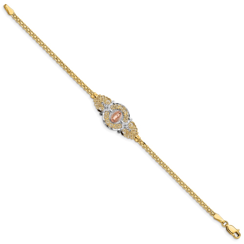 14k Two-tone with White Rhodium Our Lady of Guadalupe and Bismark Chain 7 inch Bracelet