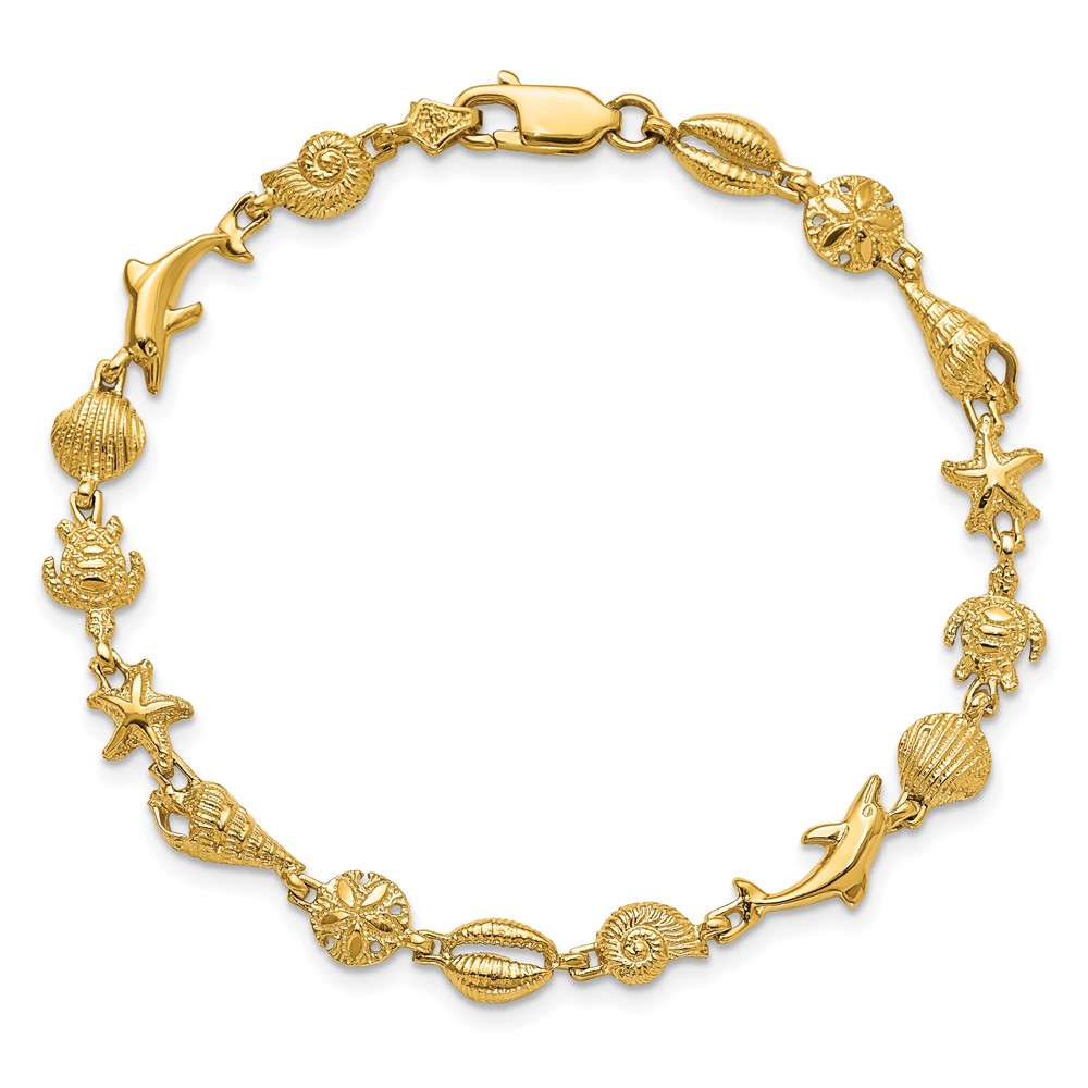 14K Polished and Textured Sea Life 7.25 inch Bracelet
