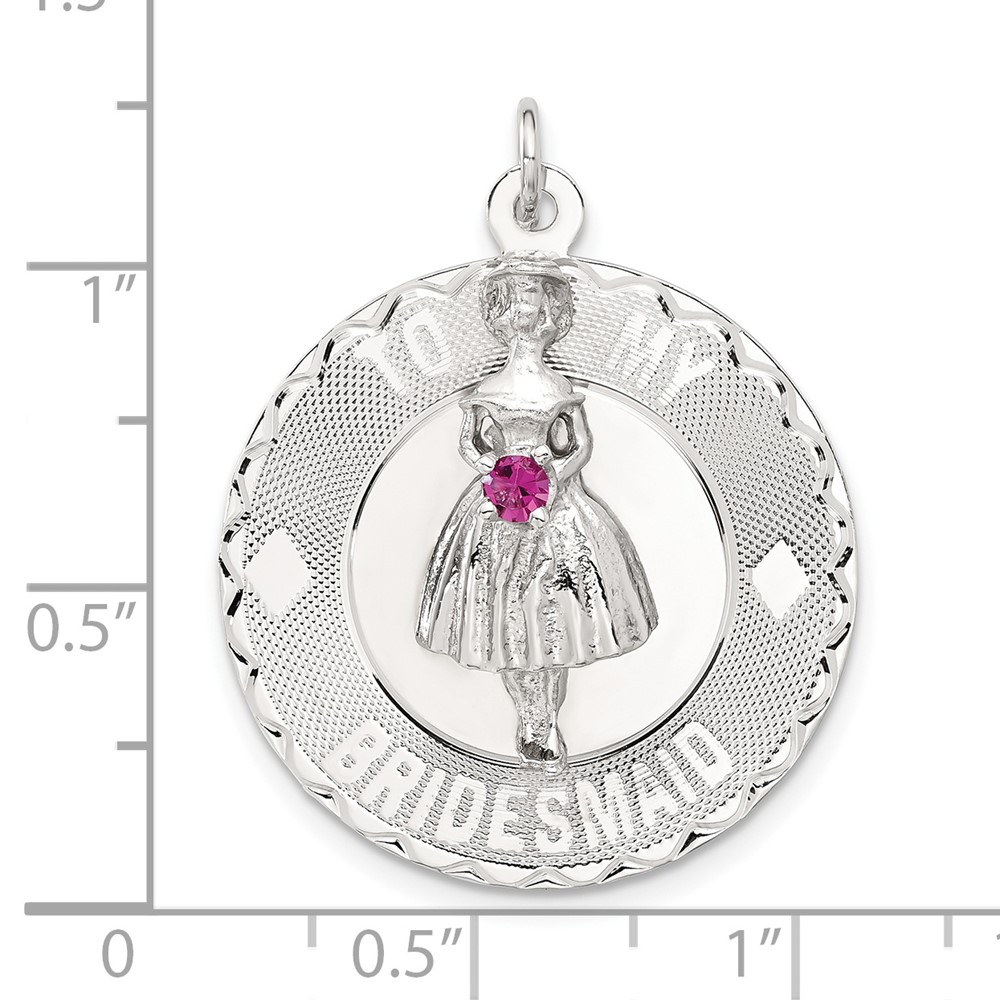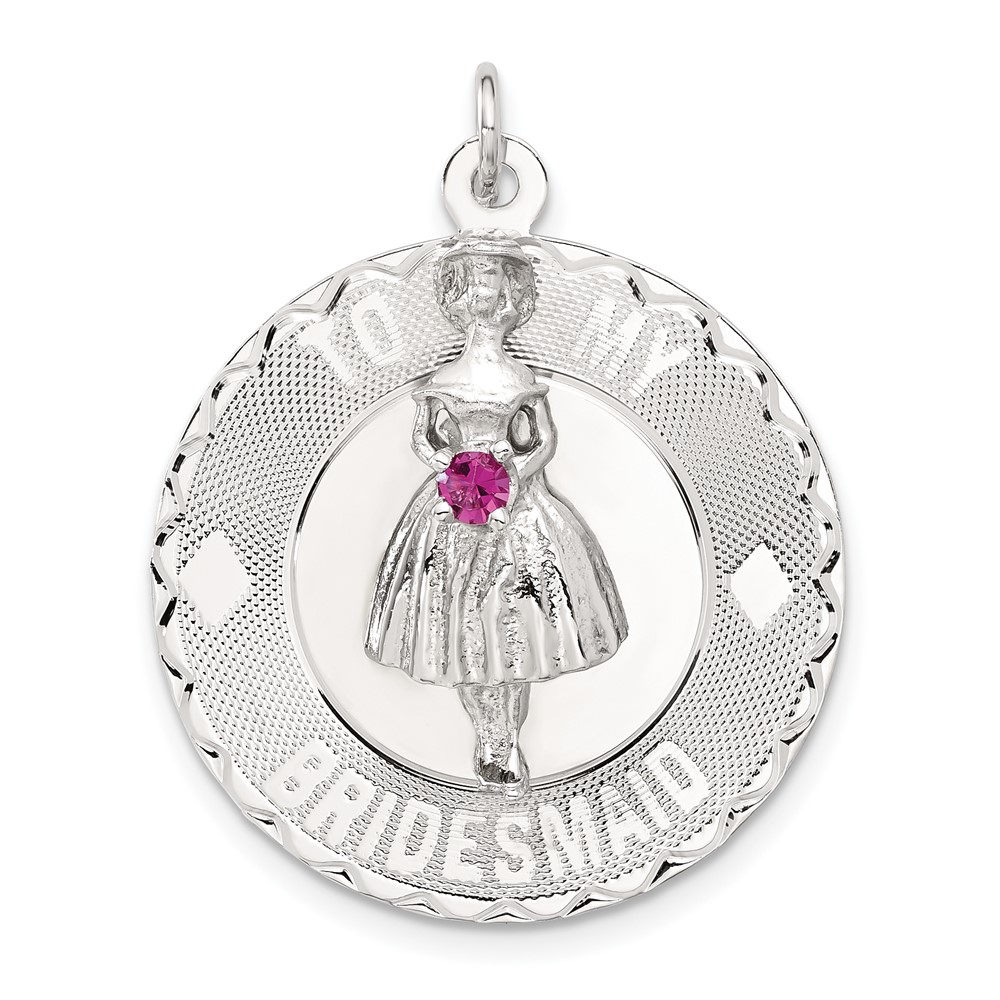 Sterling Silver To My Bridesmaid Pink CZ Disc Charm
