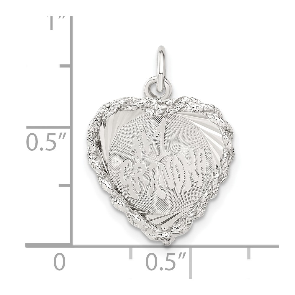 Sterling Silver Diamond-cut #1 Grandma Heart Disc Charm