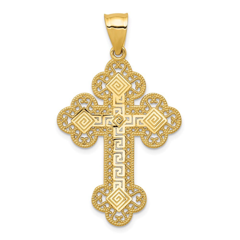 14k Budded Greek Key Cross Pendant