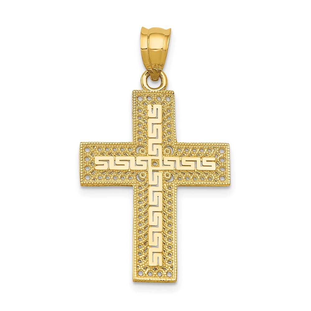 14k Greek Key Filigree Cross Pendant