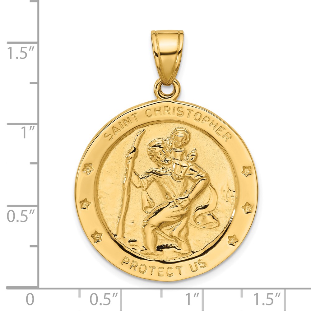 14k Polished Large Saint Christopher Medal Round Pendant