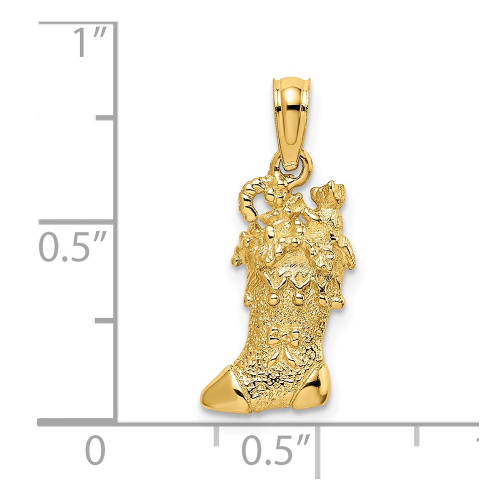 14k Solid Polished 3-D Christmas Stocking Charm