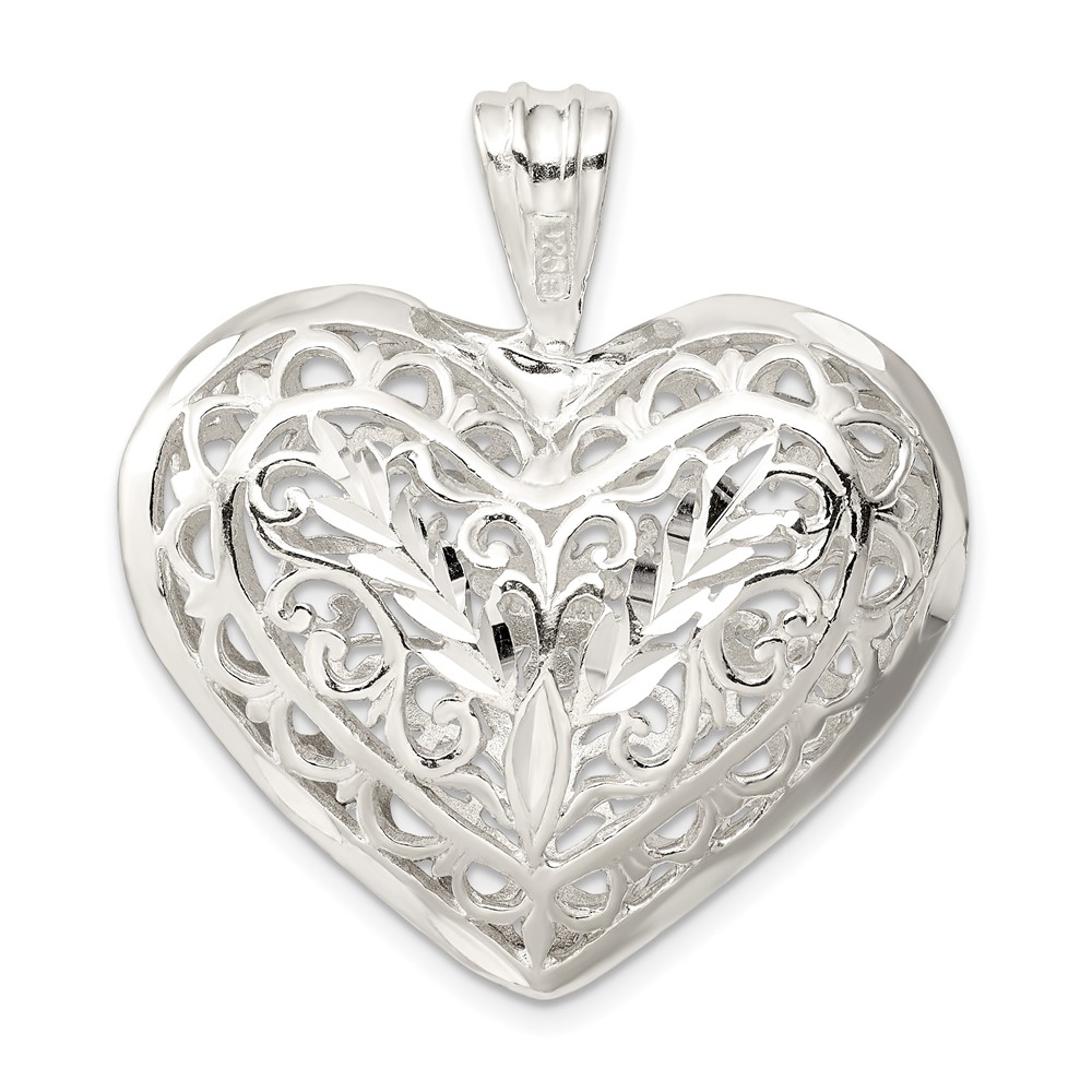 Sterling Silver Filigree Puffed Heart Pendant