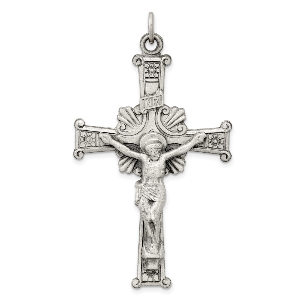 Sterling Silver Antiqued INRI Crucifix Pendant