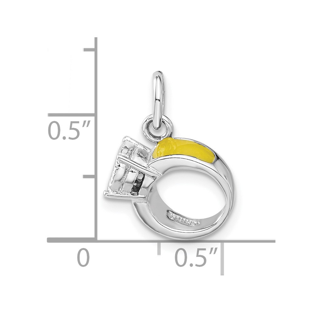 Sterling Silver Rhodium-plated & Yellow Enameled Ring Charm
