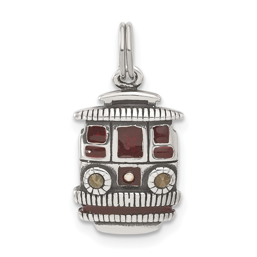 Sterling Silver Maroon Enameled Marcasite Trolley Charm