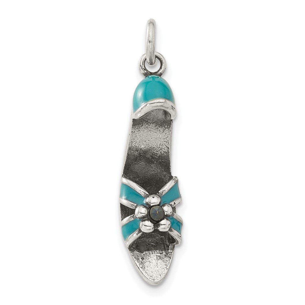 Sterling Silver Marcasite & Blue Enameled High Heel Shoe Charm
