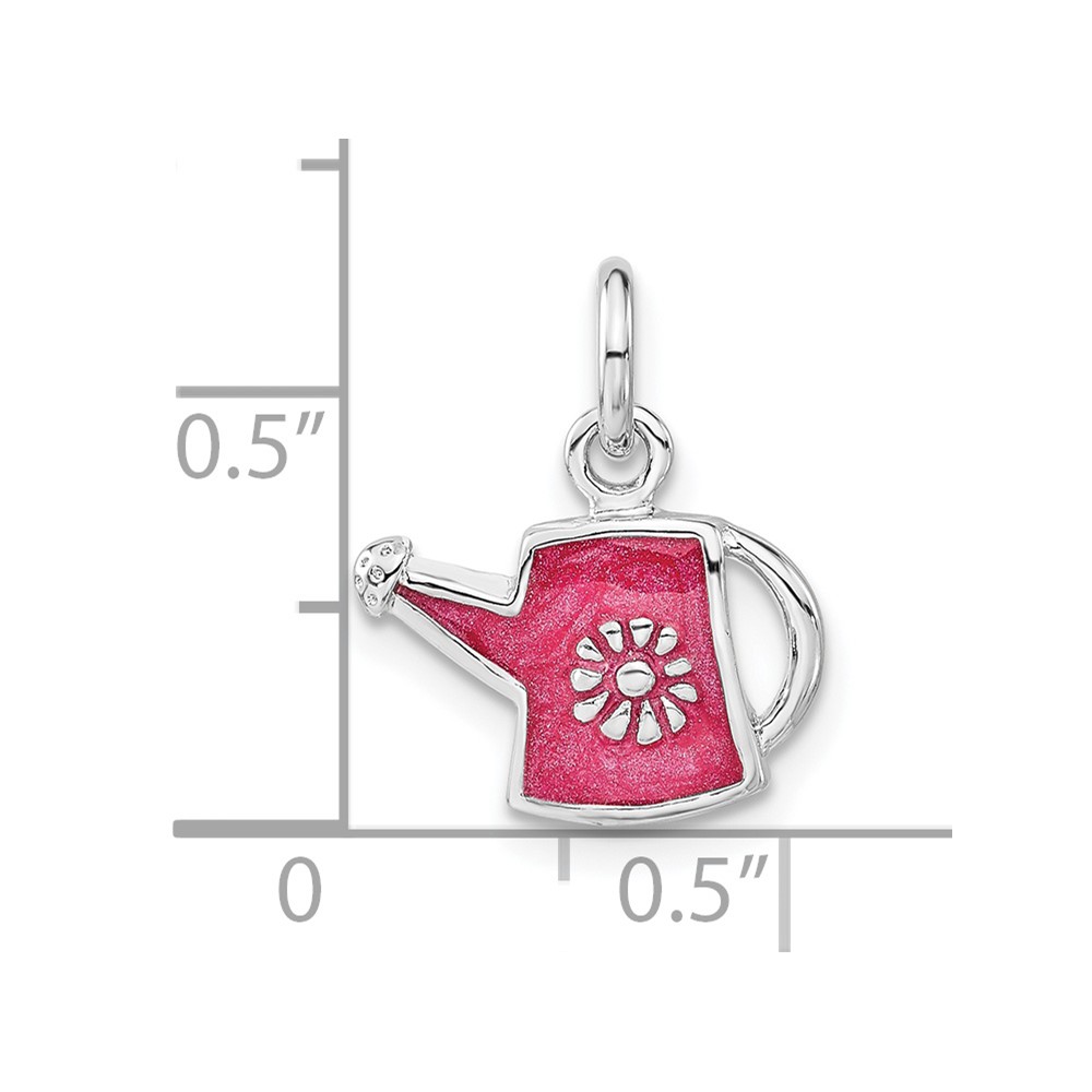Sterling Silver Polished Dark Pink Enameled Flower Water Jug Charm
