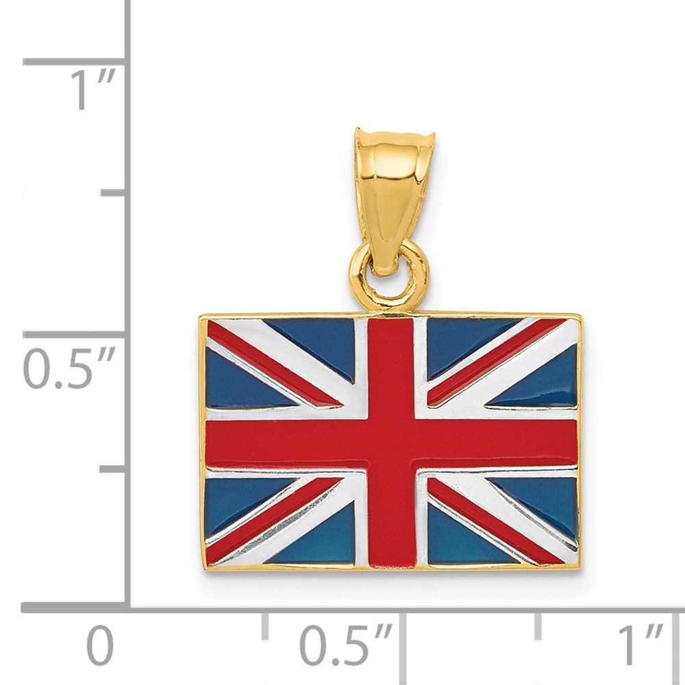 14K and White Rhodium Solid Enameled United Kingdom Flag Pendant