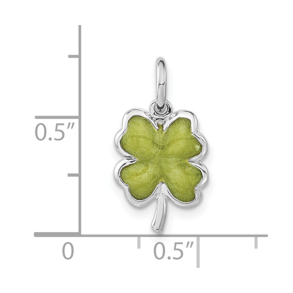 Sterling Silver Polished Green Enamel 4 Leaf Clover Charm