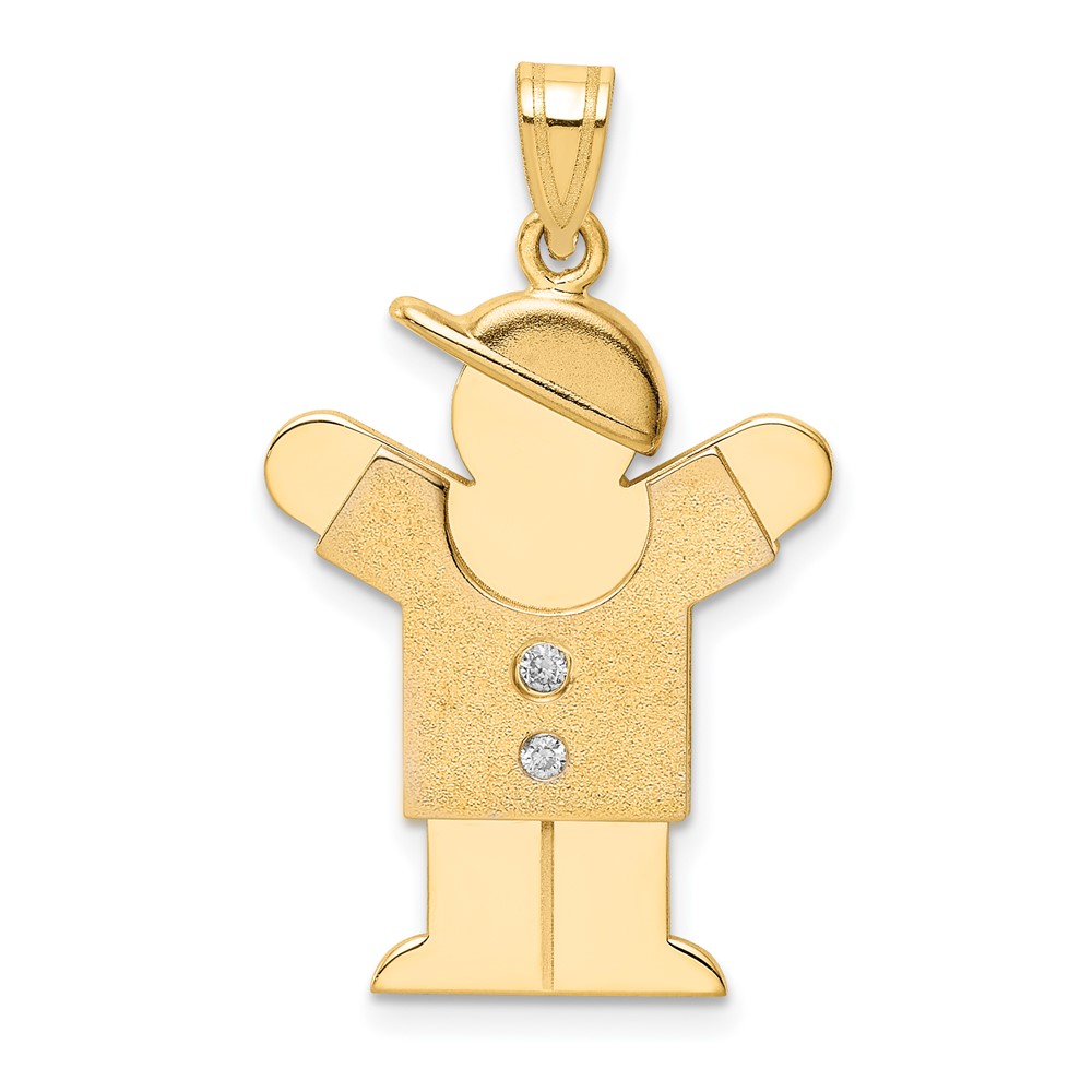 14k The Kids Medium Boy with Hat on Right AAA Diamond Love Pendant