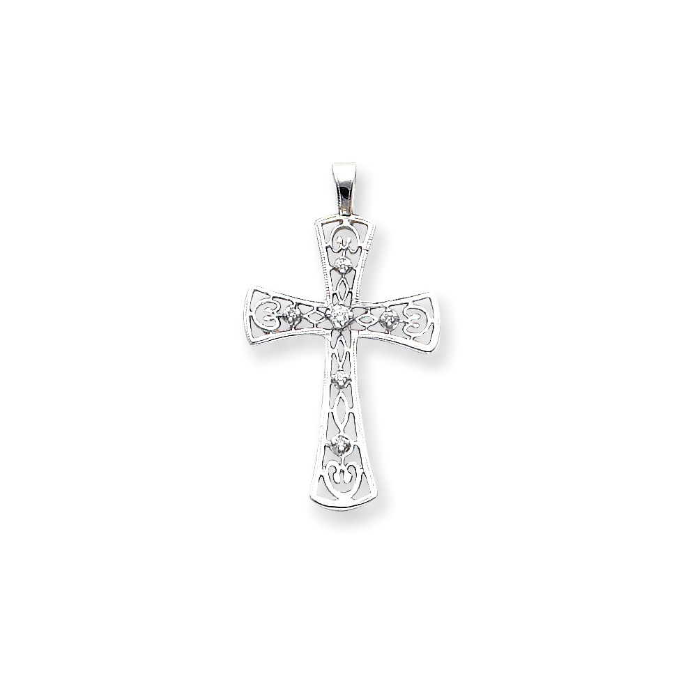 14k White Gold AA Diamond Cross Pendant