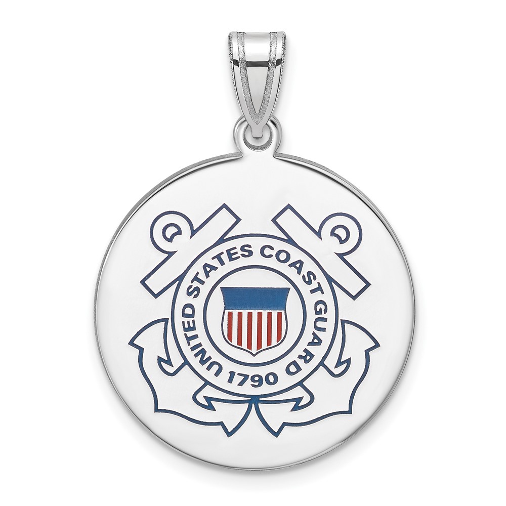 Sterling Silver Rhodium-plated US Coast Guard Disc