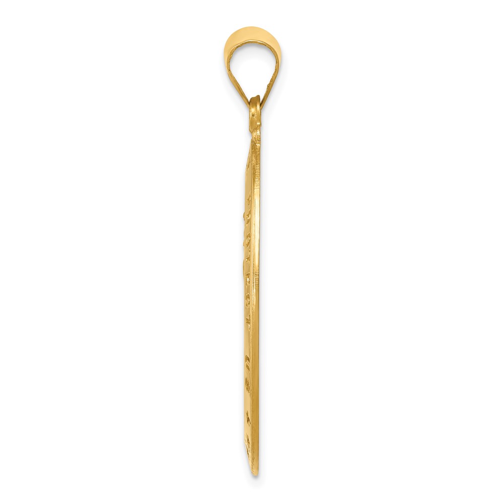 14k Polished and Satin Baptism Spanish Recuerdo Del Bautismo on Back Round Charm