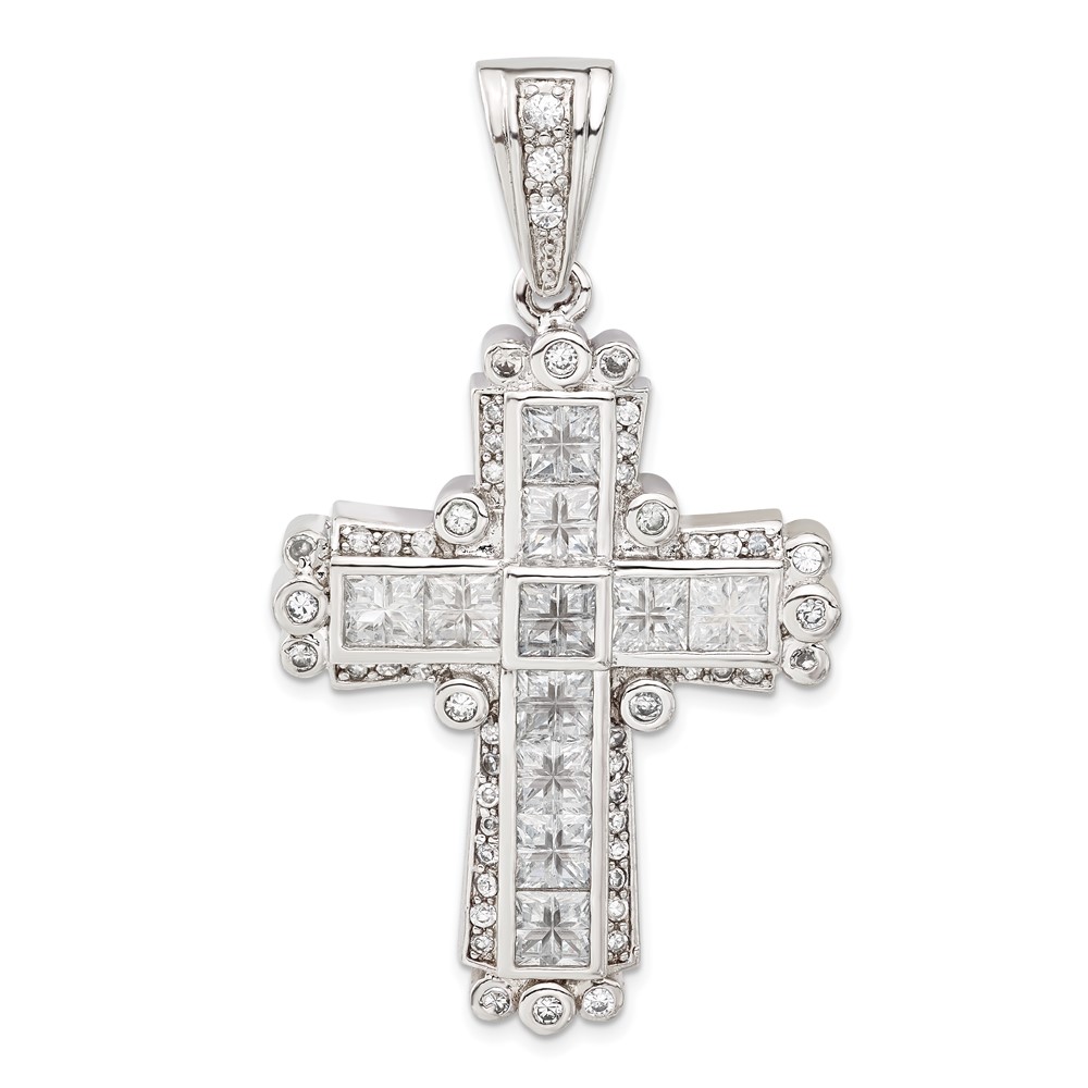 Sterling Silver Polished CZ Cross Pendant
