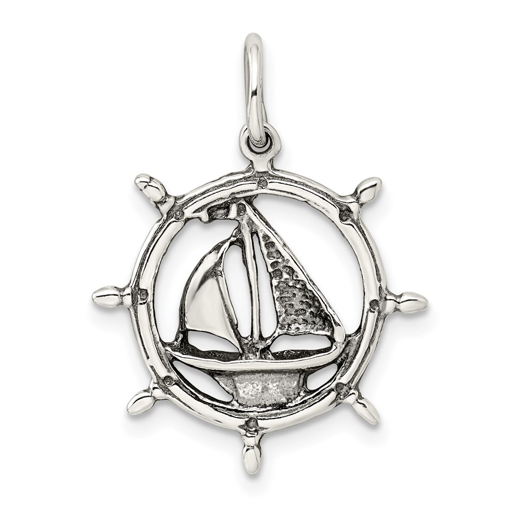 Sterling Silver Antiqued Sailboat in Wheel Charm