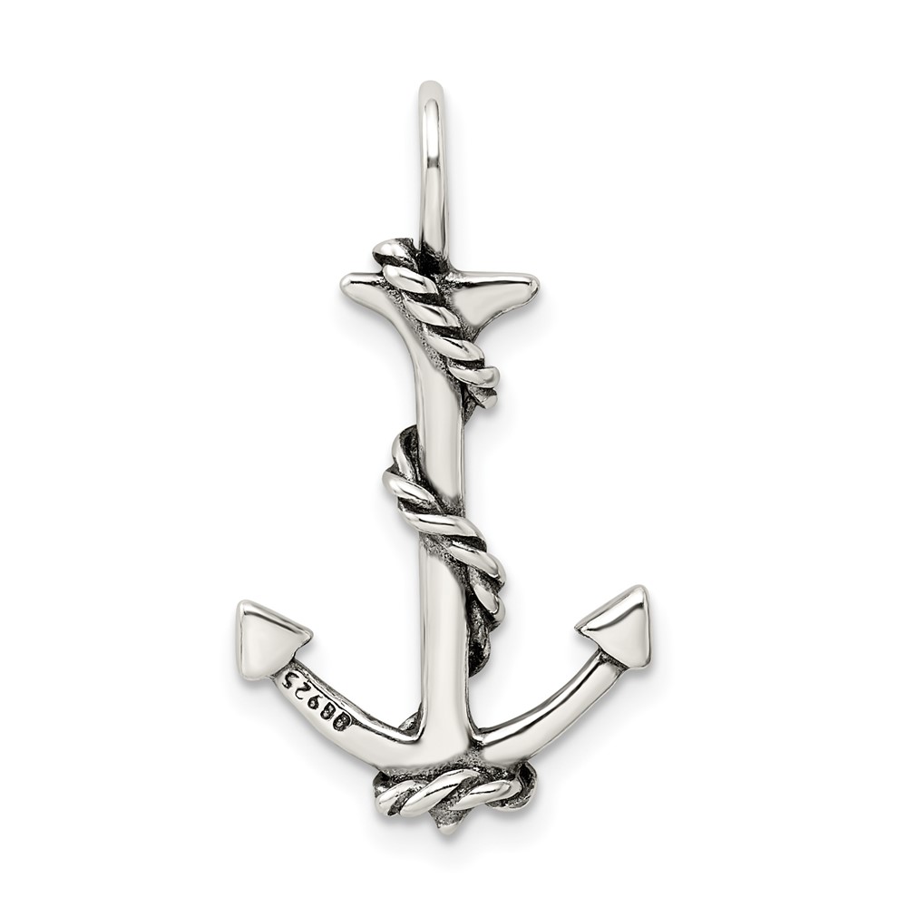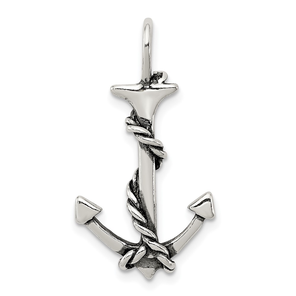 Sterling Silver 3D Antiqued Anchor and Rope Pendant
