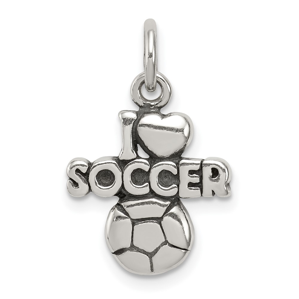 Sterling Silver Antique I (heart) Soccer Charm