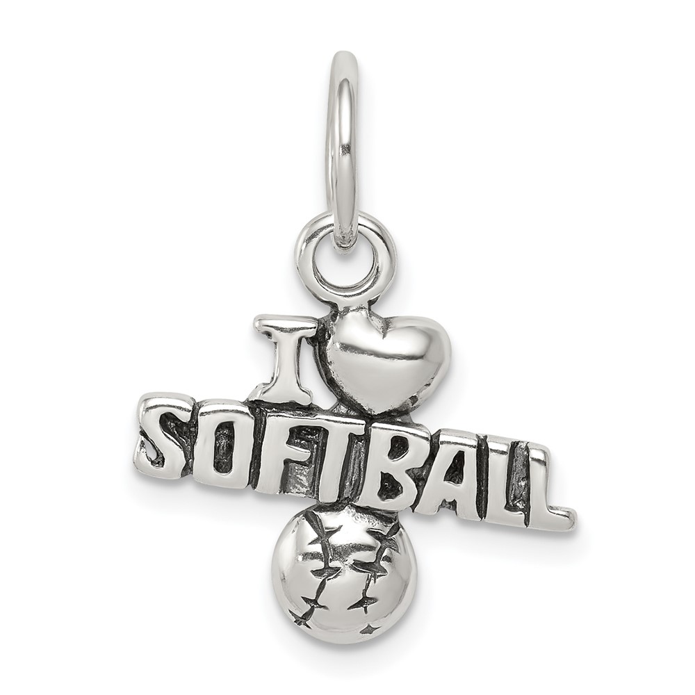 Sterling Silver Antique I (heart) Softball Charm