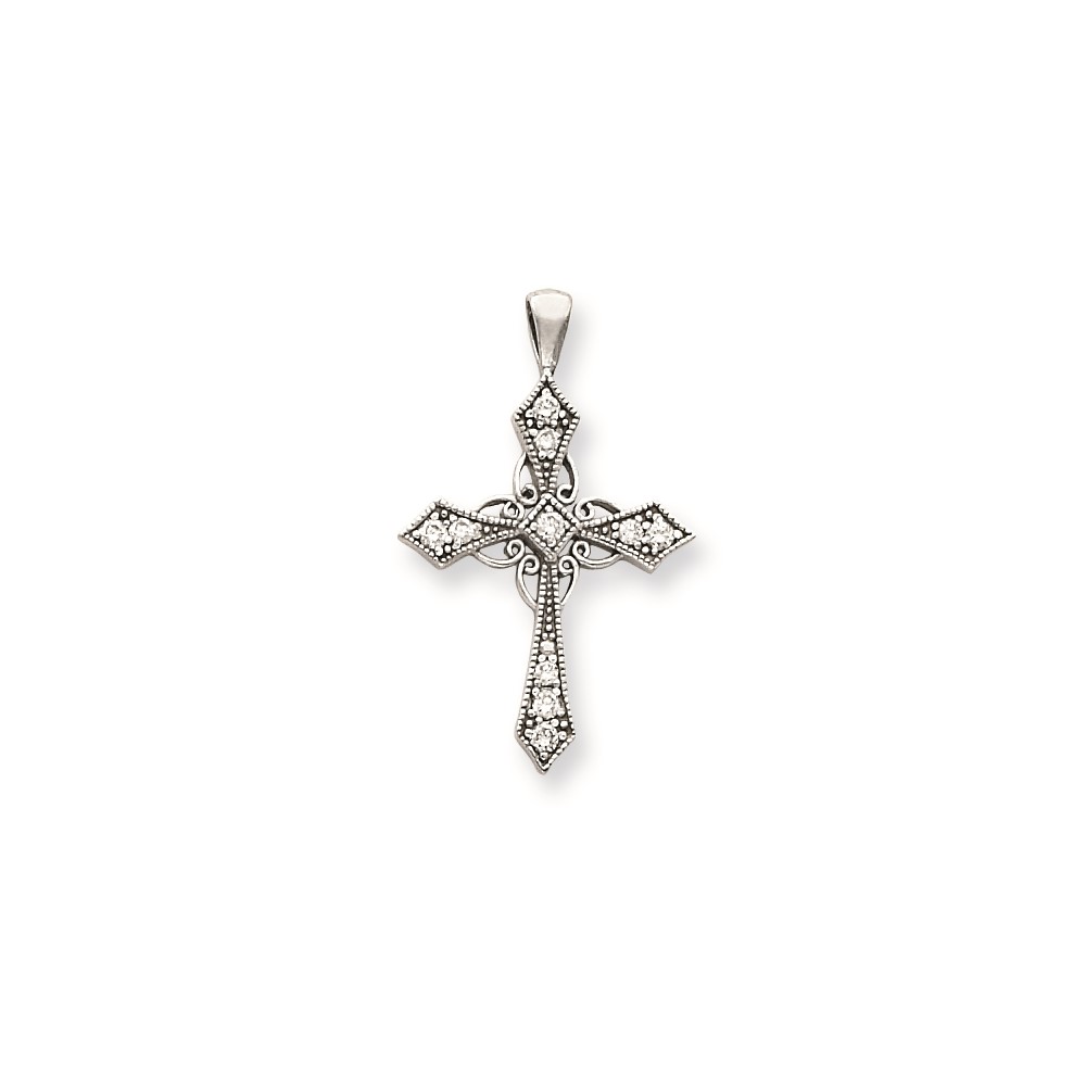 14k White Gold AA Diamond cross pendant