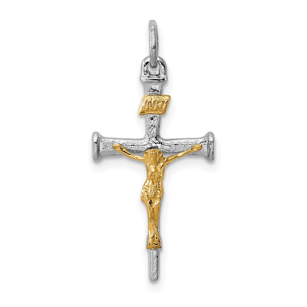 Sterling Silver Platinum-plated & 18k Gold-plated Crucifix Charm