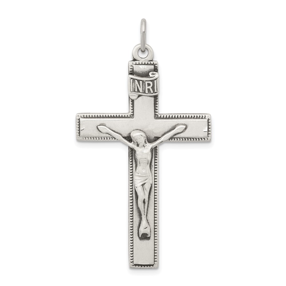 Sterling Silver Antiqued INRI Crucifix Pendant